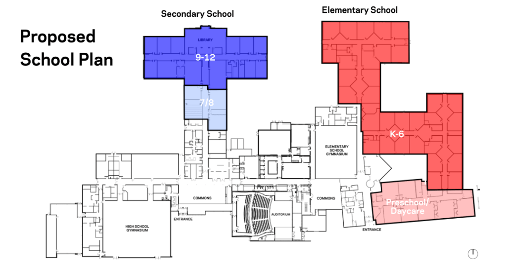 - Restructures the school plan to this proposal which allows for any elementary growth without needing to build a new site
